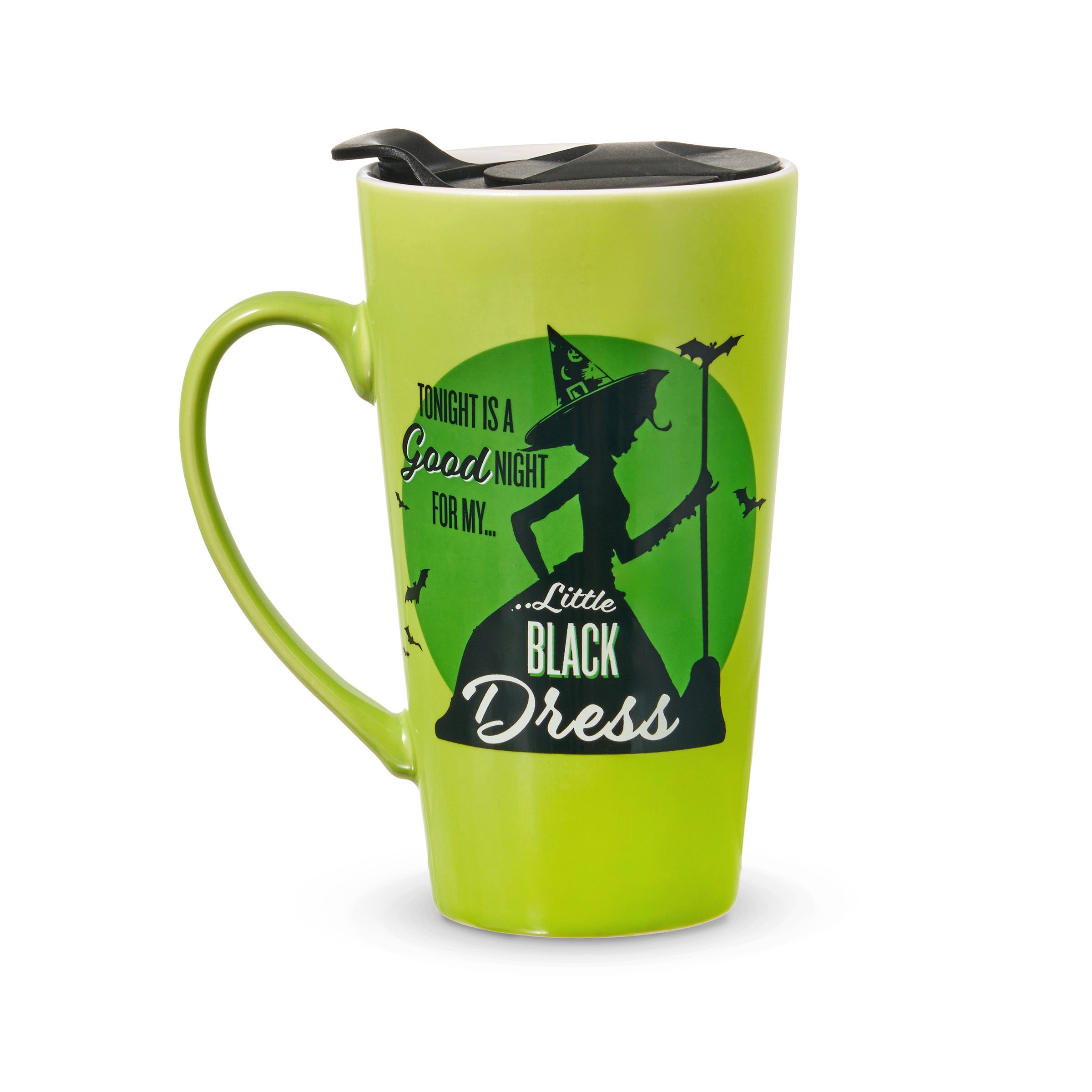 Brew up a little magic with this playful green travel mug featuring a stylish witch and the phrase “Tonight’s a good night for my little black dress.” Perfect for your morning coffee, tea, or pumpkin spice latte, this mug pairs seasonal fun with everyday function. The durable design and secure lid make it ideal for use at home, at work, or on the go, because a witch is always ready to make an entrance.