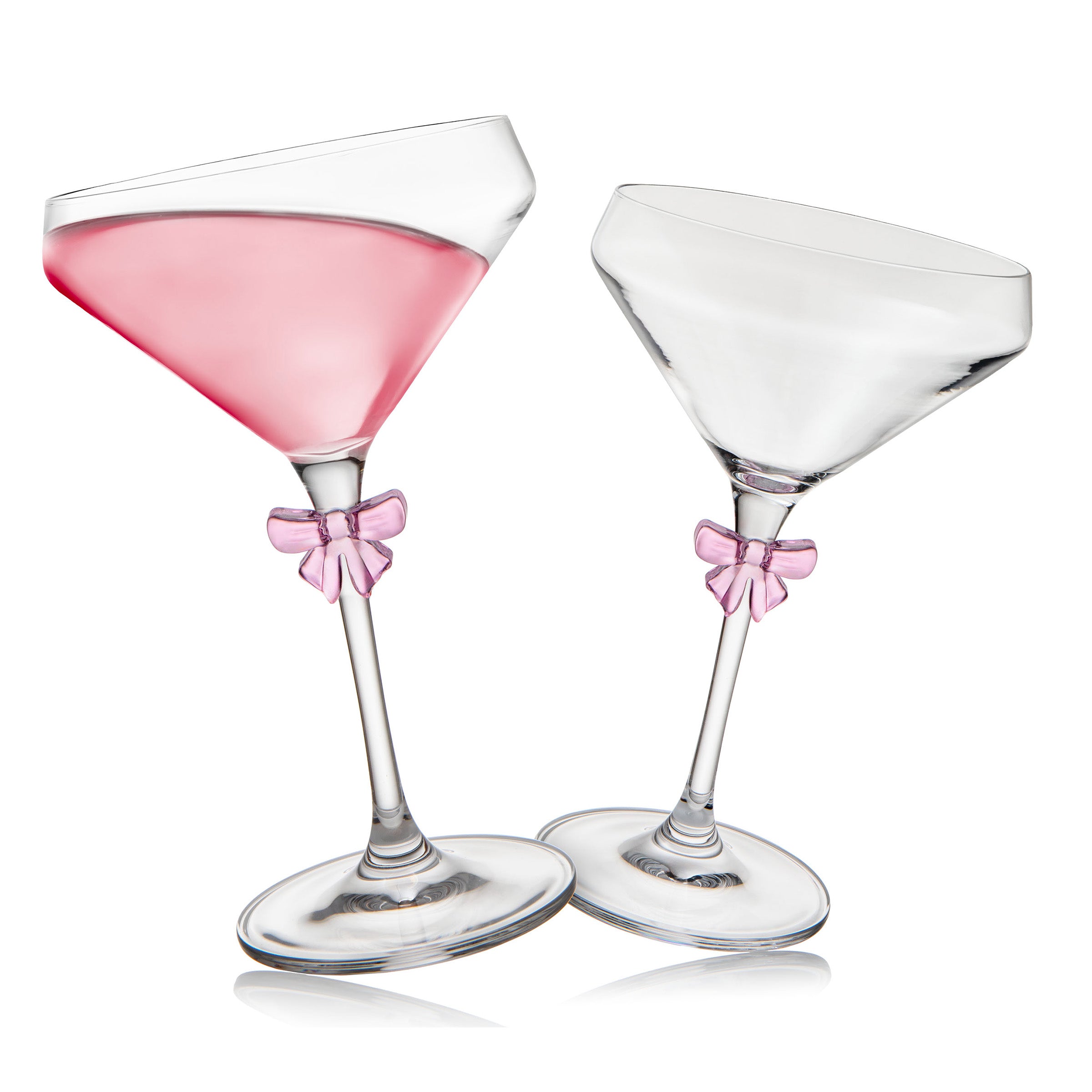 Elevate every sip with this enchanting set of two Pink Bow Coupe Glasses. Blending charm and sophistication, these exquisite glasses bring a touch of luxury to any soirée or intimate gathering, making them a timeless addition to your drinkware collection.