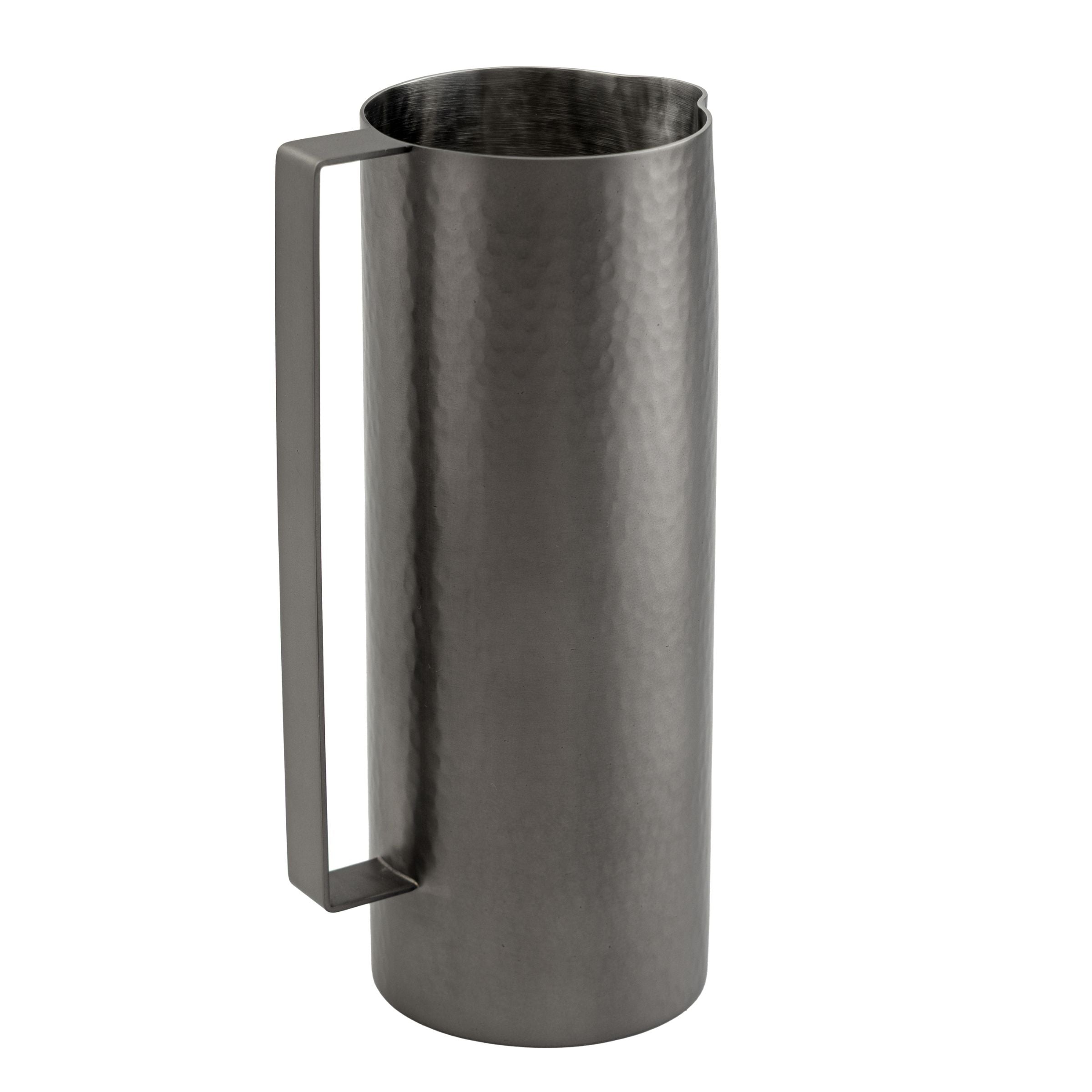 Serve in style with the Temari Hammered Gunmetal Beverage Pitcher. Handmade in India, this refined piece is crafted from stainless steel with a hammered gunmetal finish that delivers bold depth and texture. Designed with a sleek, contemporary silhouette, it seamlessly blends artisanal craftsmanship with modern elegance for a look that is both functional and striking. Perfect for serving water, cocktails, or specialty drinks, this pitcher transitions effortlessly from casual dining to elevated entertaining. With its dramatic finish and refined details, it’s a statement piece that makes every pour unforgettable.