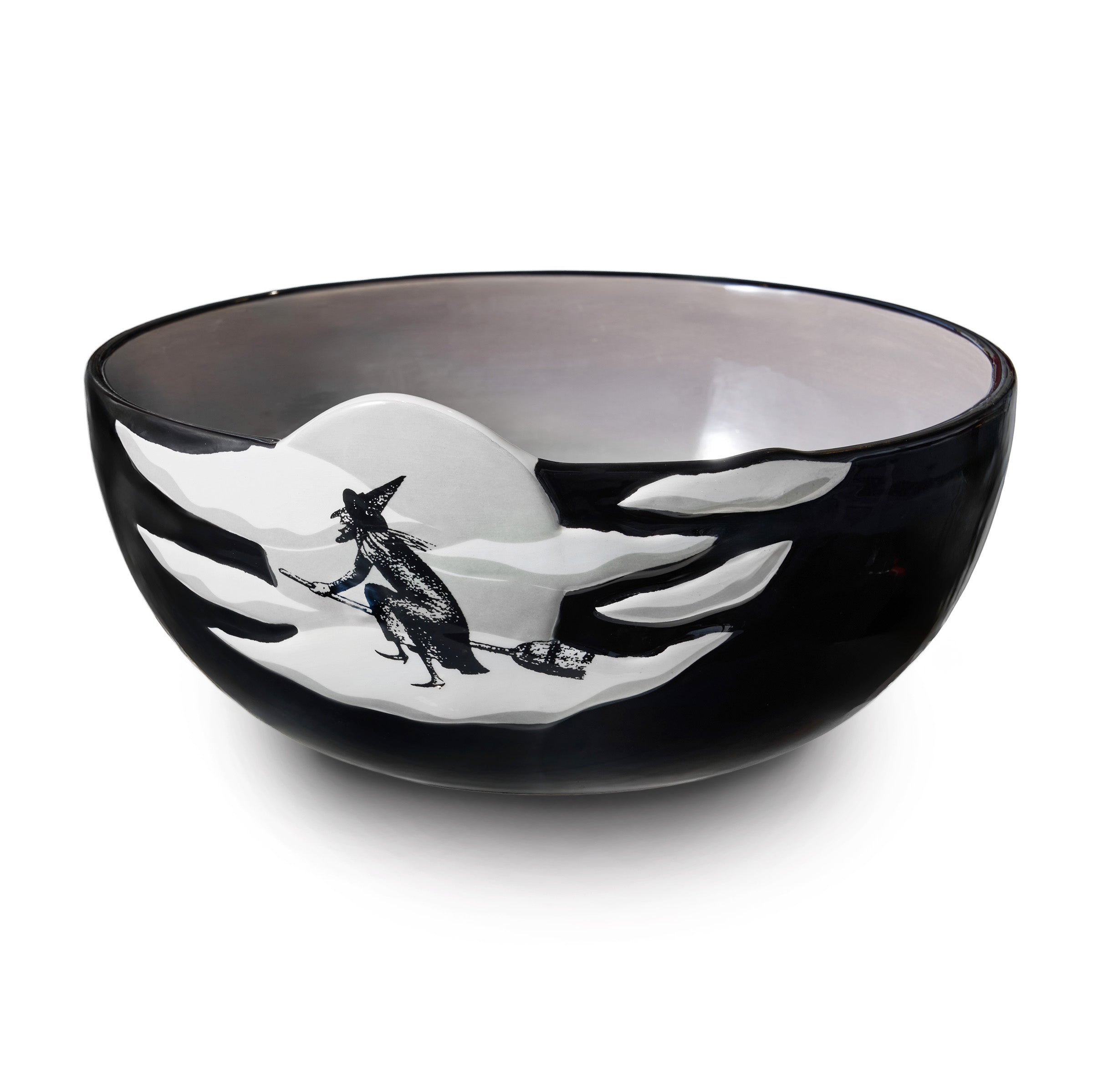 Add a spellbinding touch to your Halloween table with the Witching Hour Serving Bowl. Crafted from durable porcelain, this festive piece showcases a whimsical witch flying across the night sky on her broomstick, silhouetted against a glowing full moon. Perfect for serving snacks, candy, or party treats, it brings both charm and spookiness to your seasonal gatherings.