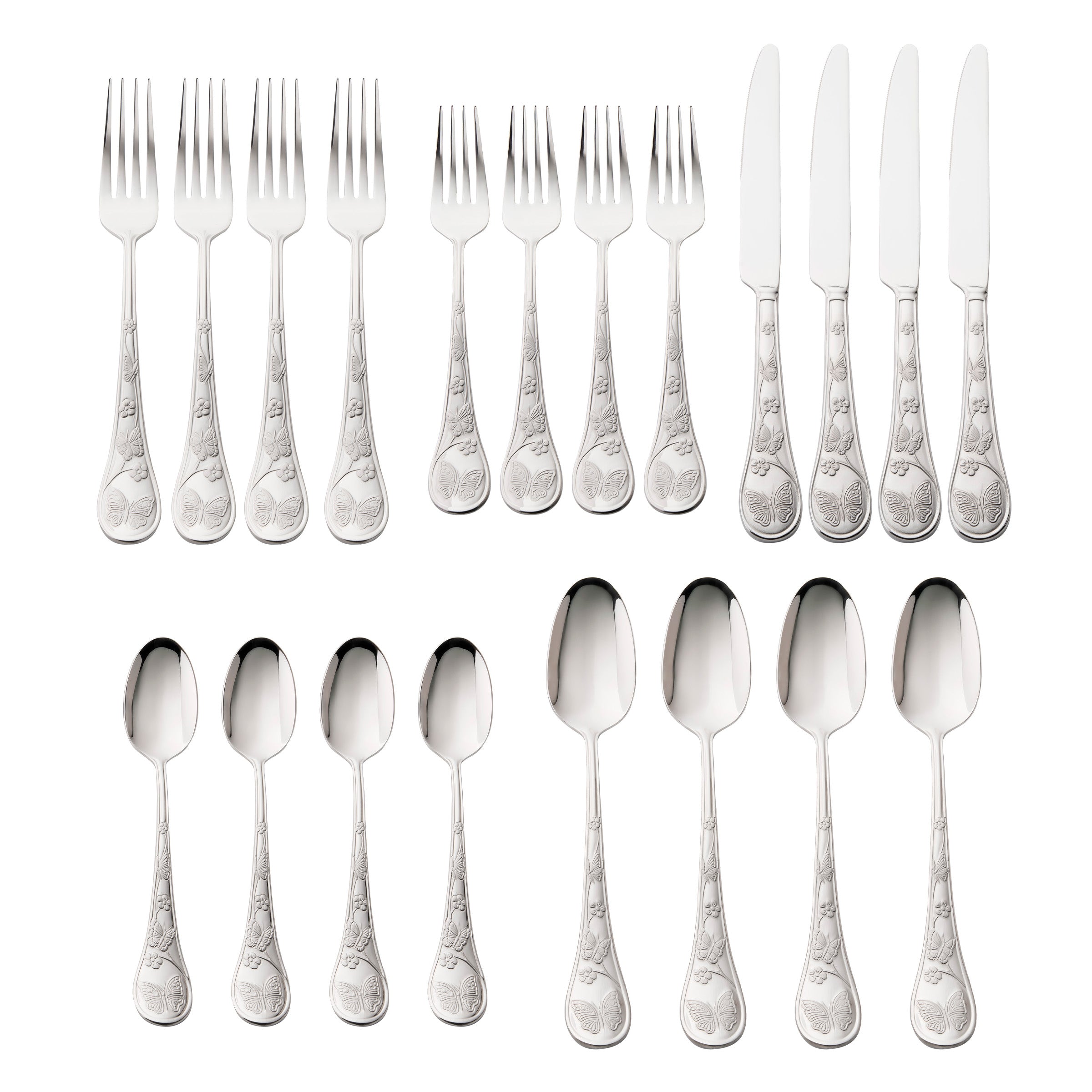 Butterfly Sandblasted 18/10 Stainless Steel 20 Piece Flatware Set, Service For 4