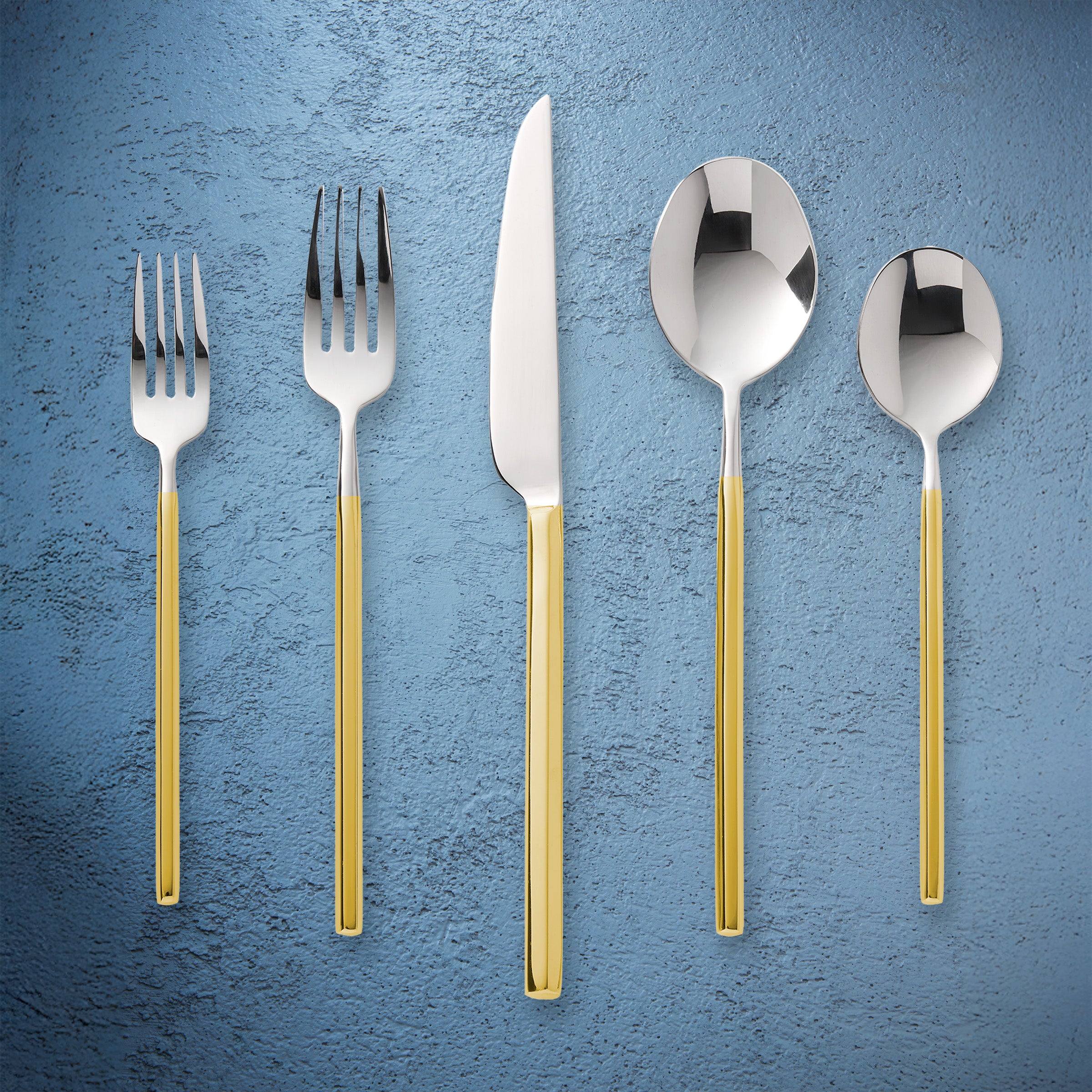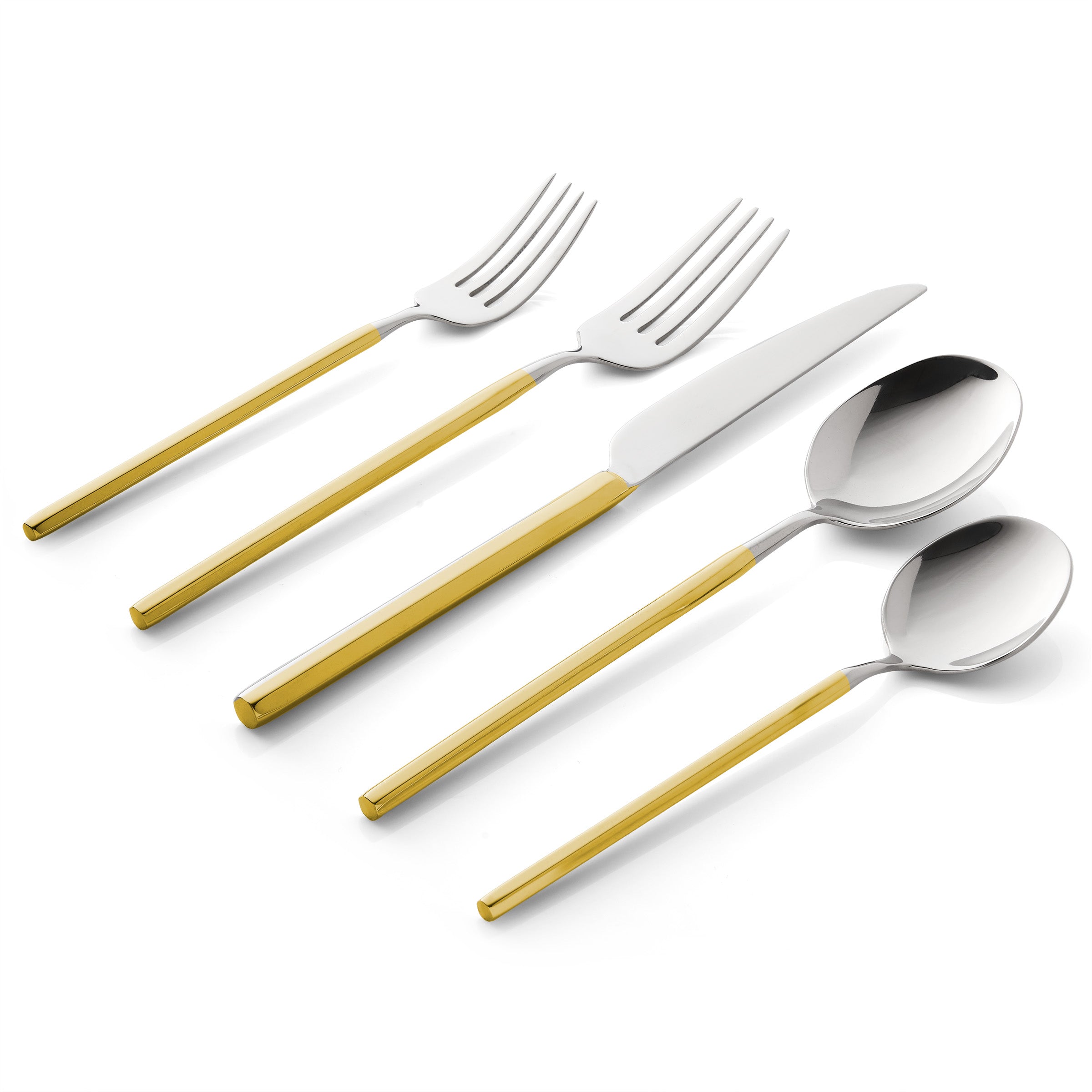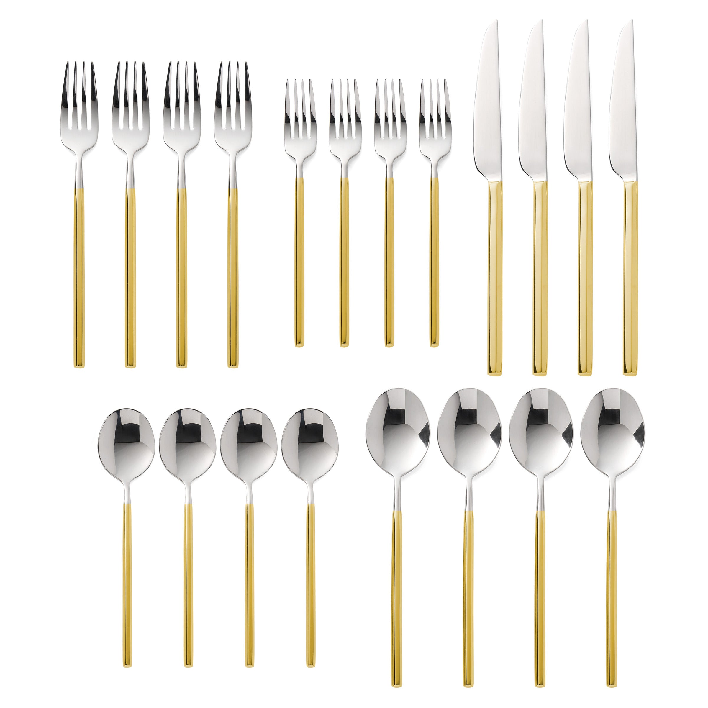 Esagono Mirrored Gold 18/10 Stainless Steel 20 Piece Flatware Set, Service For 4