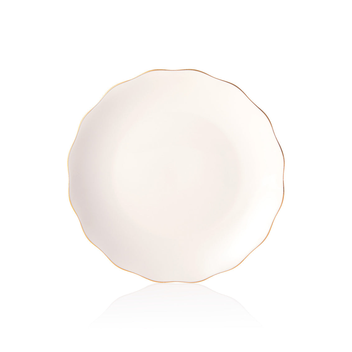 Add a touch of elegance to any spread with this scalloped appetizer plate, finished with a delicate gold rim. Ideal for hors d’oeuvres, desserts, or small bites, its classic design brings refined charm to casual gatherings and formal affairs alike. Pair it with the full collection or let it shine on its own.