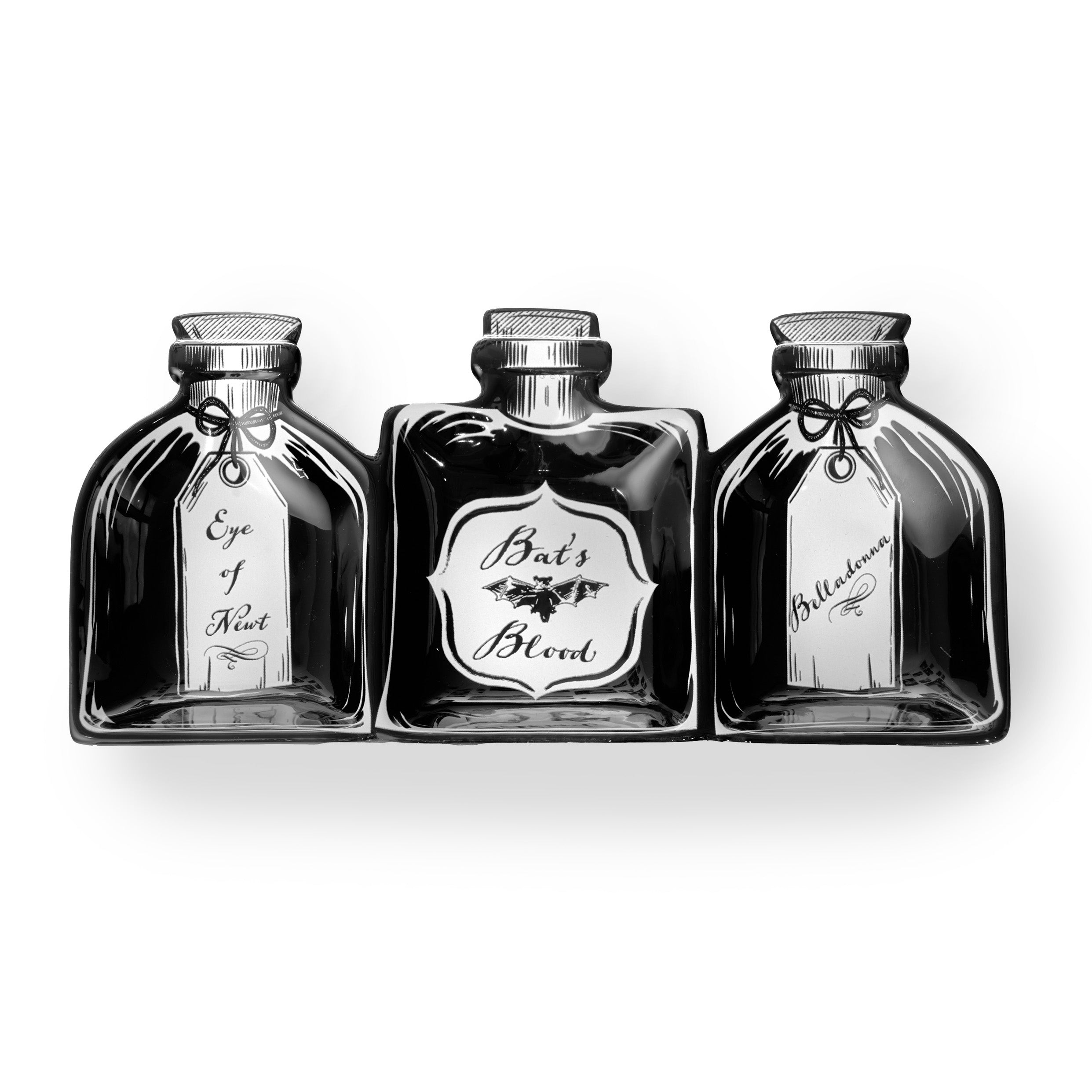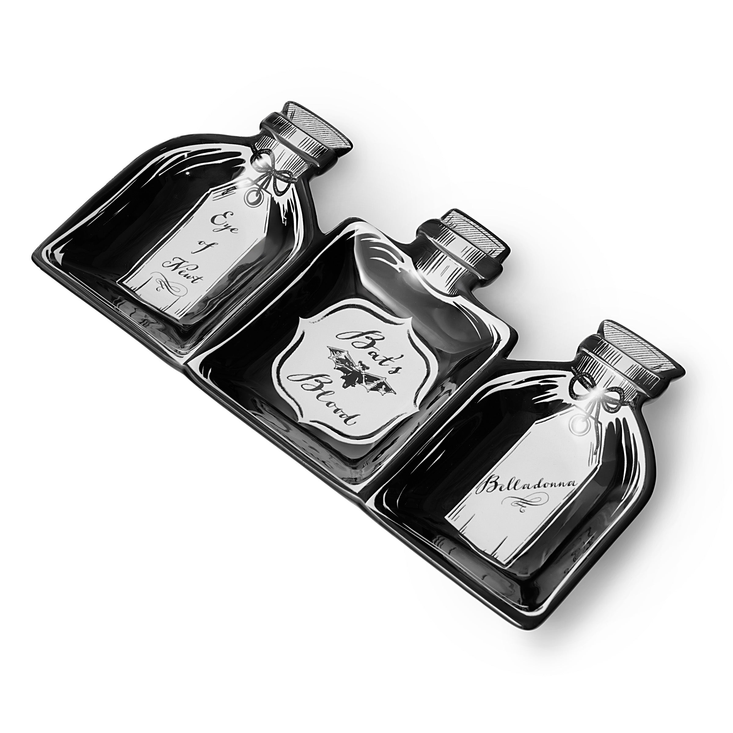 Bring a touch of witchy charm to your Halloween table with the Hex & Potion Bottles Platter. Crafted from fine porcelain, this festive platter features three intricately designed bottles filled with spooky “witch ingredients,” perfect for serving candies, snacks, or small treats. A whimsical and eye-catching addition, it’s ideal for entertaining or adding a magical accent to your Halloween décor.