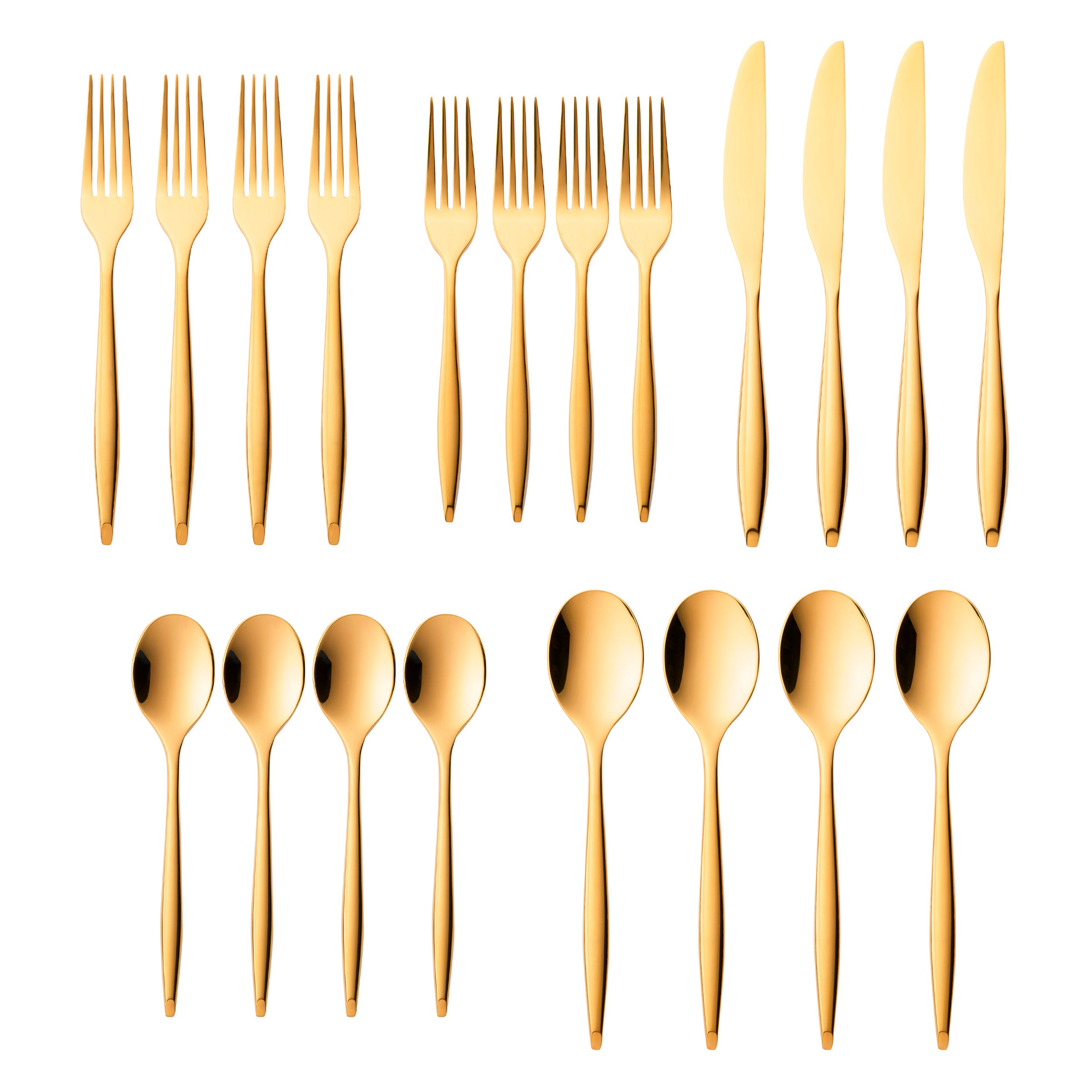 Milano Mirrored Gold 18/10 Stainless Steel 20 Piece Flatware Set, Service For 4